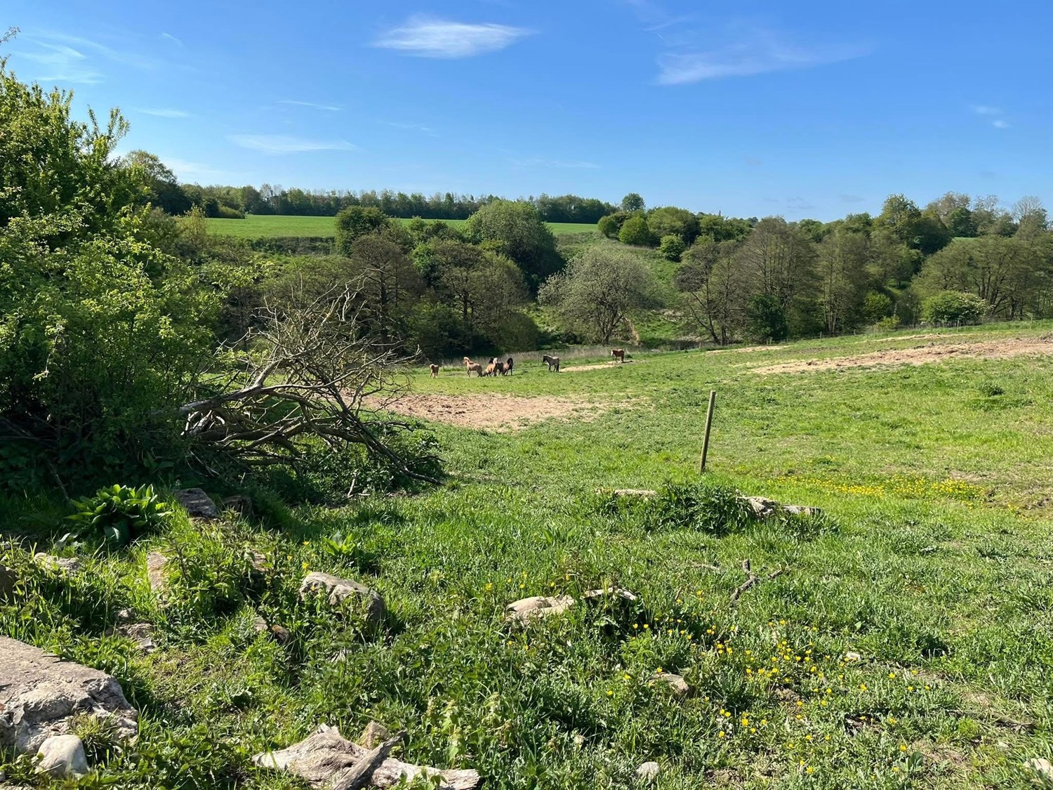 Vores hingste fold er ca. 1800 meter lang og mellem 50 og 300 meter bred, masser af naturligt læ, skrænter, eng, sandbanker og rindende vand i form af en å, der løber langs med folden i hele længden.